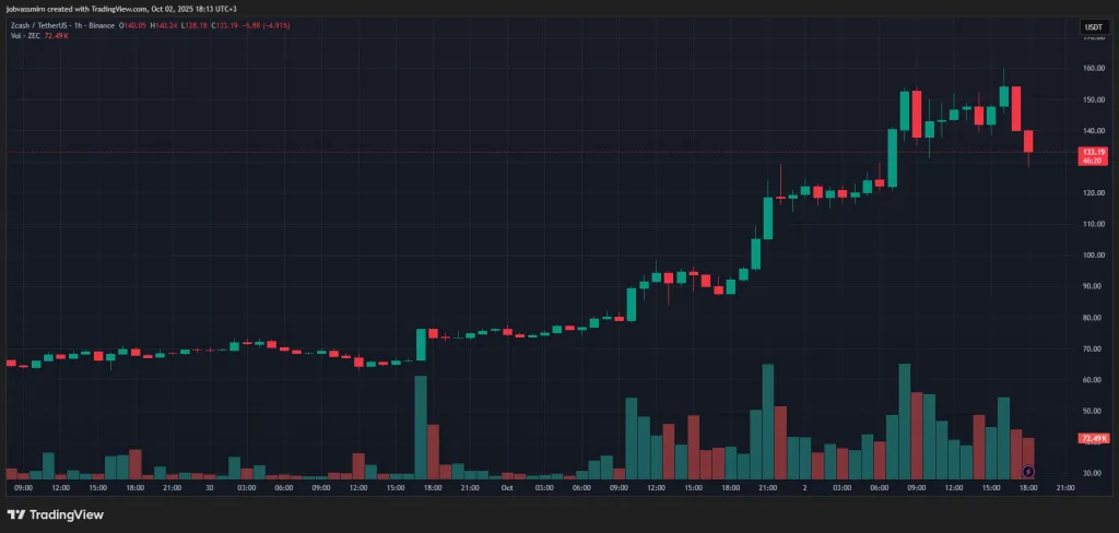 Часовой график ZEC/USDT биржи Binance. Источник: TradingView.