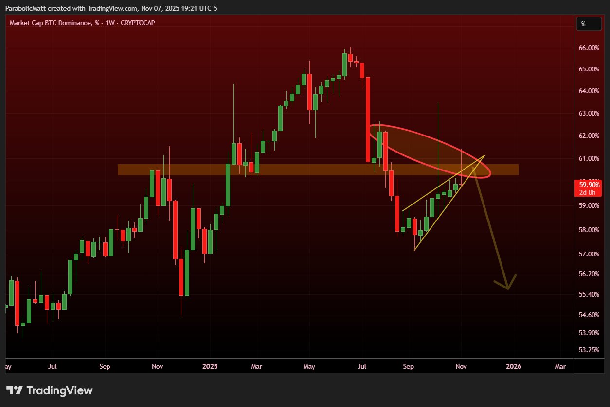 1-недельный график доминирования биткоина. Аналитика: Мэтью Хайленд