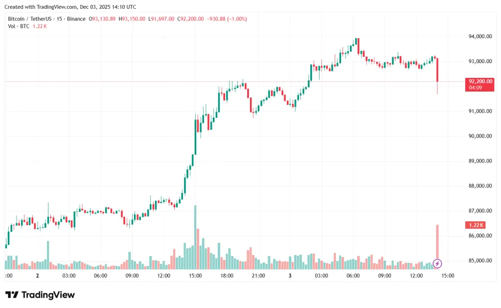 На момент написания курс биткоина составляет $92 200 (+4,5% за сутки).
