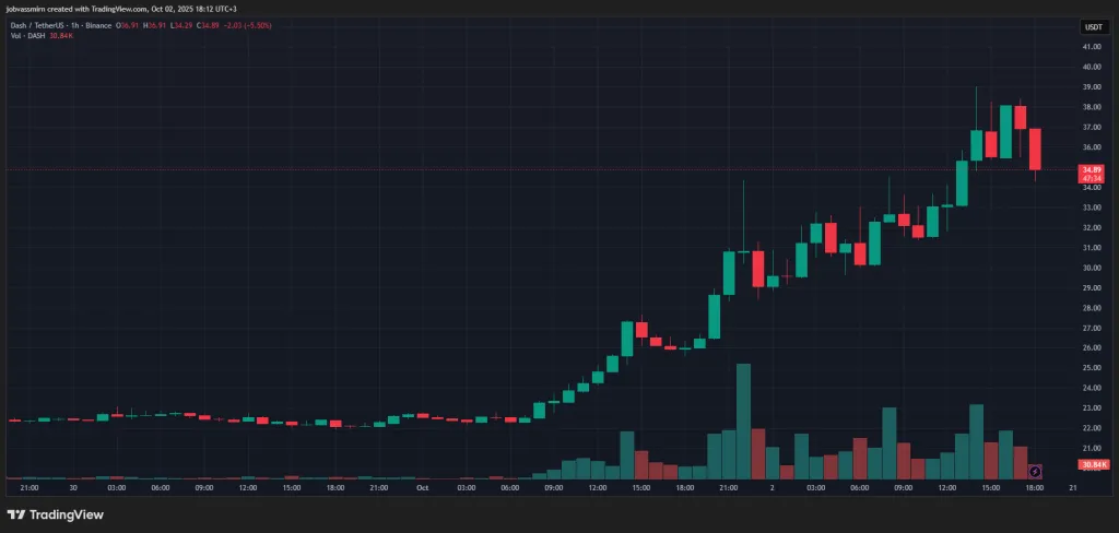 Часовой график DASH/USDT биржи Binance. Источник: TradingView.