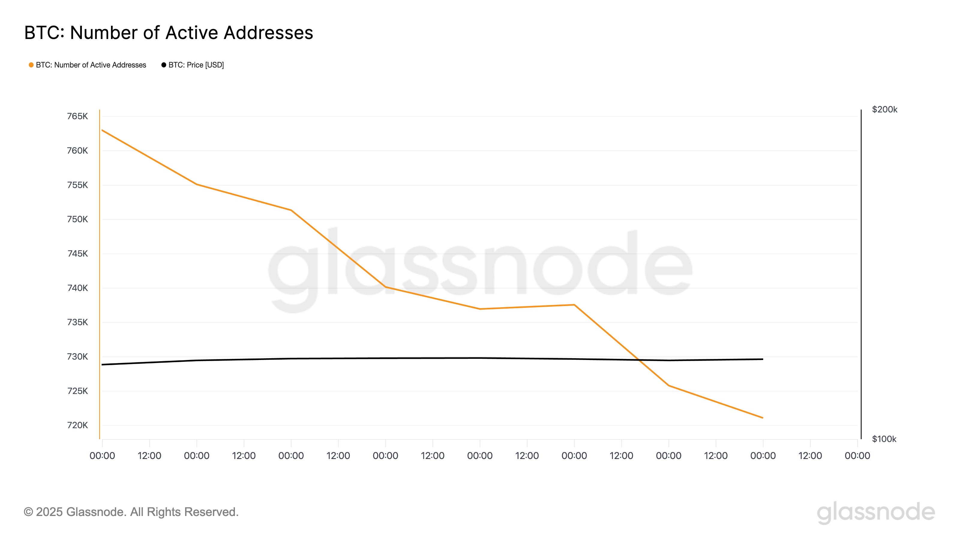 Кроме того, данные Glassnode показывают снижение ончейн-активности, что также усиливает риски падения BTC. По данным поставщика данных, число активных уникальных адресов в сети Биткоин постепенно уменьшалось в течение последних семи дней и во вторник, 22 июля, достигло 721 086 адресов.