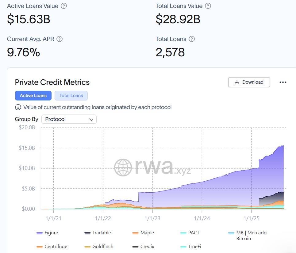 Показатели рынка токенизированного частного кредитования. Источник: RWA.xyz