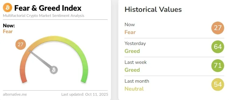 На фоне обвала рынка криптовалютный индекс страха и жадности опустился из нейтральной зоны на отметку 37.