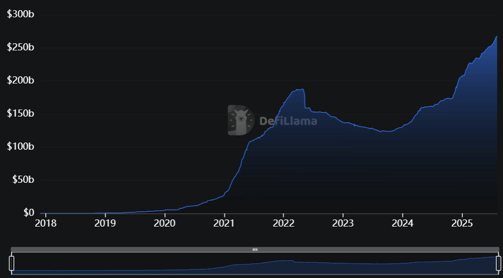 Рынок стейблкоинов стремительно развивается, при этом британский фунт стерлингов не играет в нём активной роли. Источник: DefiLlama