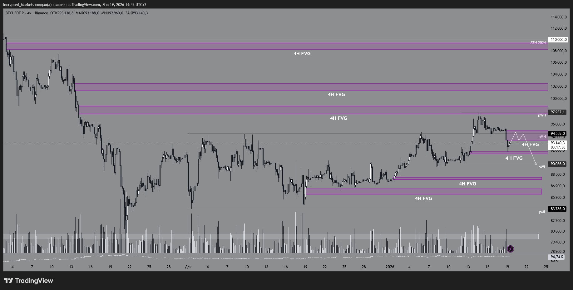 Биткоин наконец сдвинулся с мертвой точки: сценарий C был отработан, цена преодолела уровень в $95 000, а дальше — закономерная реакция от $98 000 и откат уже после выходных. Фон, как обычно, подлил хаоса: заявление президента США Дональда Трампа было опубликовано 17 января 2025 года (когда рынок реагирует вяло), плюс история с судом по пошлинам внезапно переехала, а геополитика и политический шум вокруг ФРС только добавляют нервозности.
