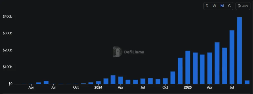 Торговый объем бессрочными контрактами составил почти $400 млрд.