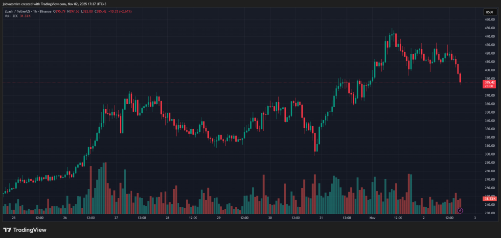 Часовой график ZEC/USDT биржи Binance. Источник: TradingView.