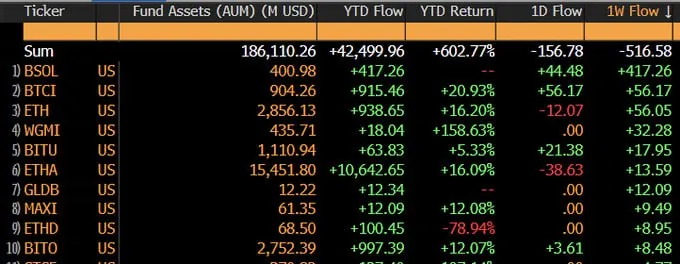 Суммарный чистый приток за неполную торговую неделю составил $199,2 млн, а объем активов под управлением (AUM) достиг $500 млн.