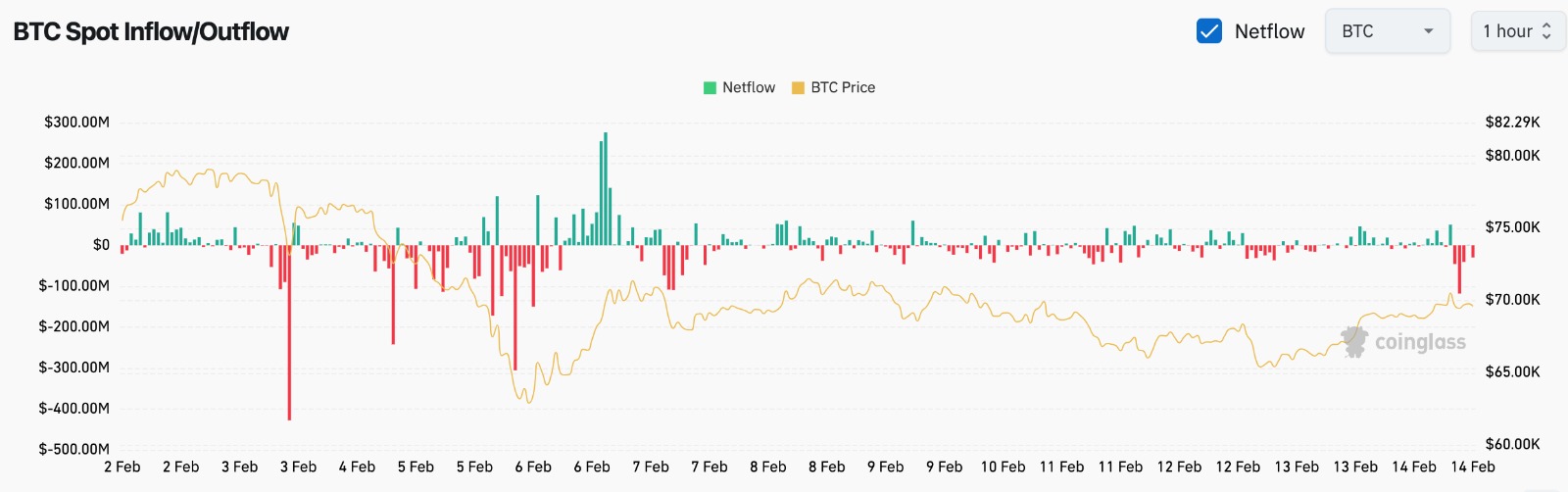 Однако 6 и 7 февраля наблюдался значительный отток средств на сумму более 250 миллионов долларов, что совпало со стабилизацией цен. С 8 февраля чистый приток средств стал меньше и более сбалансированным, что говорит о снижении давления со стороны продавцов.