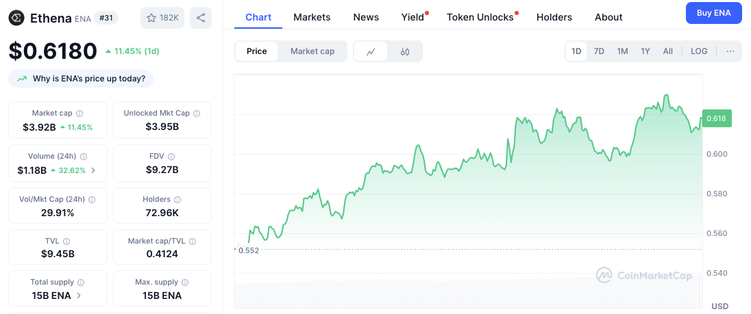 Общие перспективы рынка остаются умеренно оптимистичными. Объём торгов ENA вырос на 34% за 24 часа до 1,16 млрд долларов, что свидетельствует о высокой активности трейдеров.