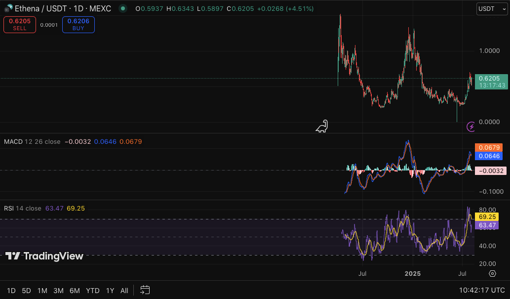 При текущей цене $0,6121, увеличившейся более чем на 10% за 24 часа, все внимание приковано к тому, сохранится ли этот бычий импульс или же близка коррекция.