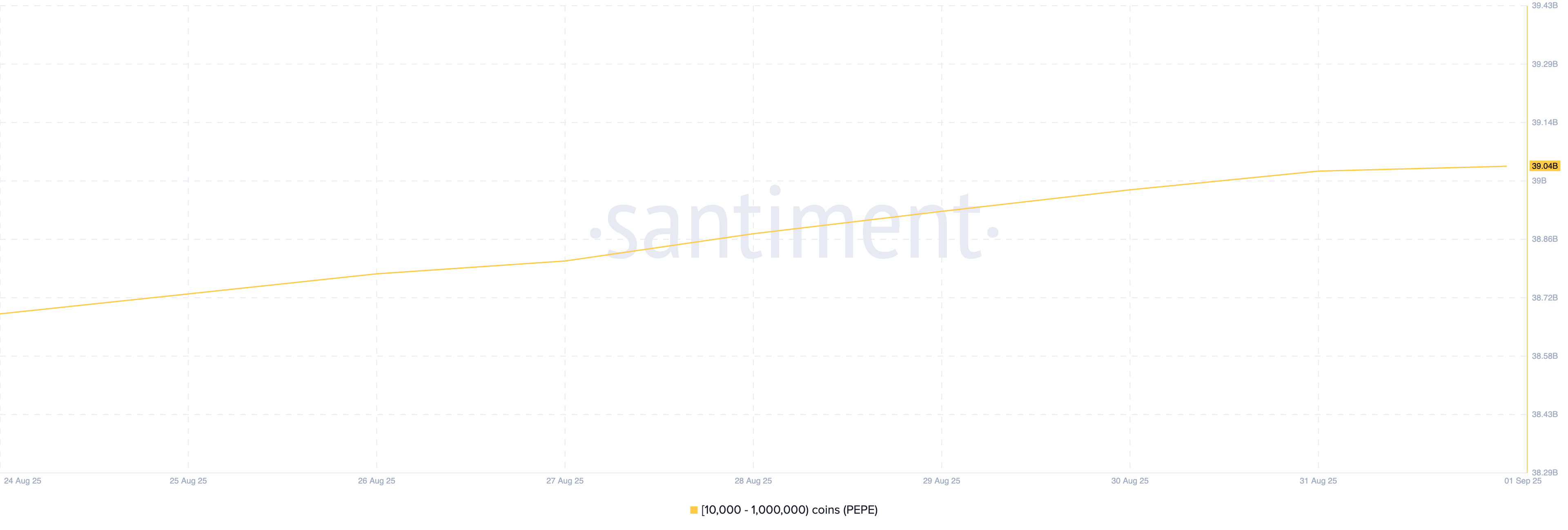 Мемкоин PEPE на базе Solana стал фаворитом среди китов, рассчитывающих на прибыль в сентябре. Ончейн-данные показывают, что с 24 августа крупные инвесторы с кошельками от 10 000 до 10 млн PEPE накопили 360 млн токенов.