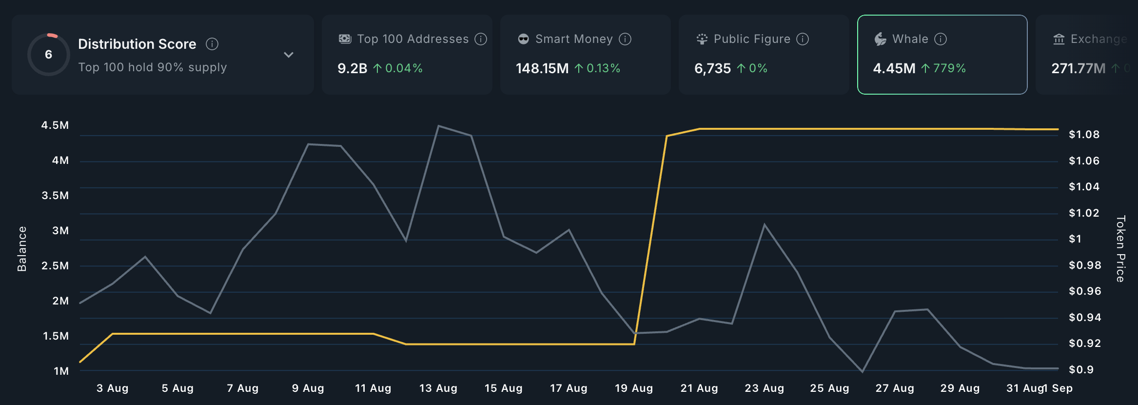 TRUMP — еще один актив, который криптокиты активно покупают в надежде на прибыль в этом месяце. По данным Nansen, за последнюю неделю владение китов мемкоином увеличилось на 2%, что говорит о растущем доверии крупных инвесторов.
