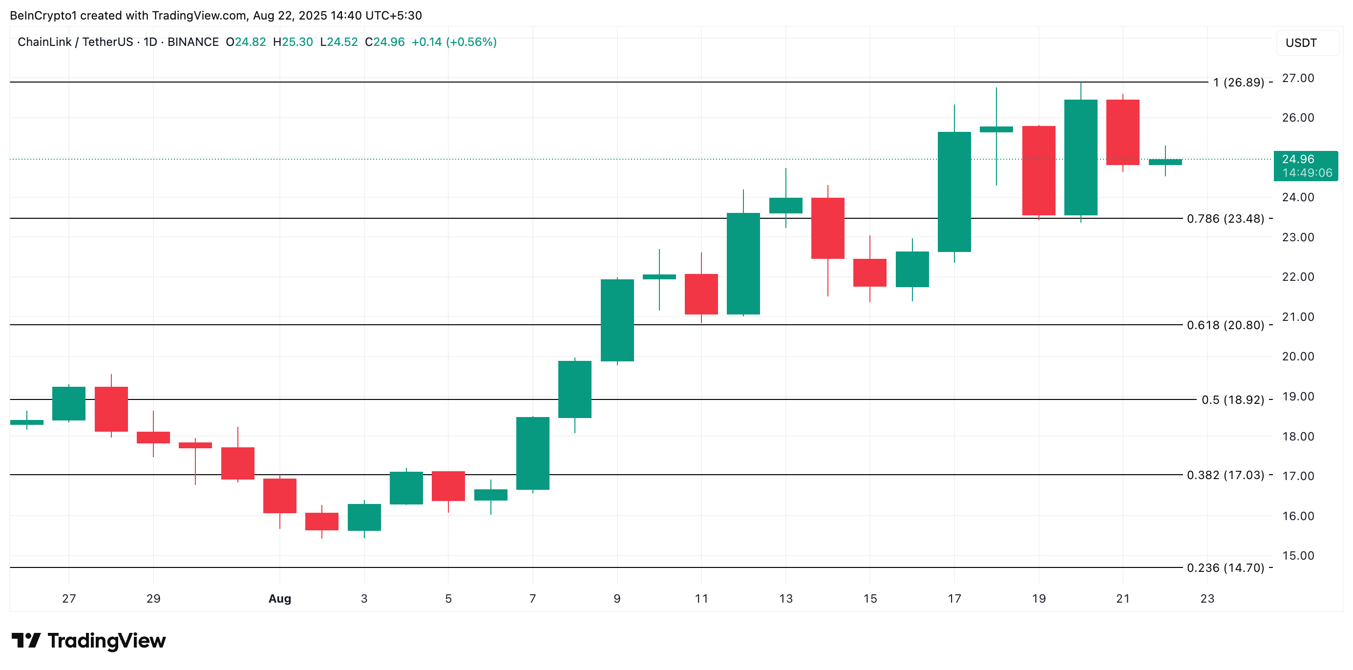 Этот всплеск активности китов говорит о растущей уверенности в перспективах токена. Если накопление продолжится, LINK получит шанс подняться до $26,89.