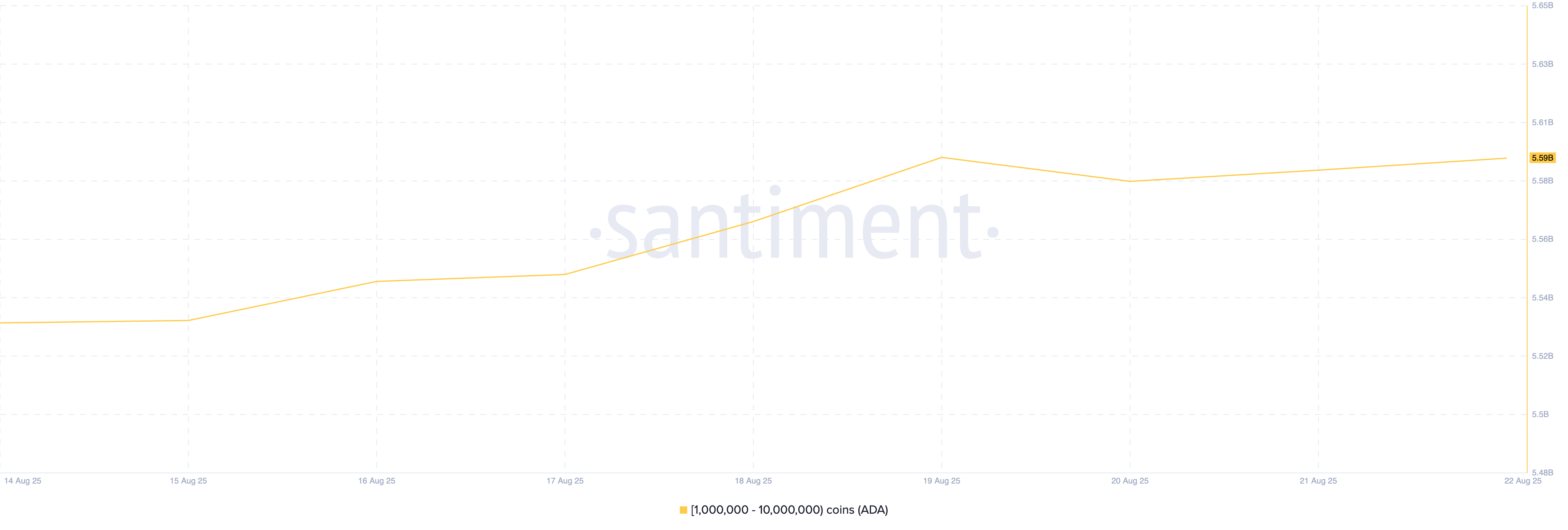 Монета первого уровня (L1) ADA привлекла внимание криптокитов на этой неделе, несмотря на общее падение рынка. По данным ончейн-анализа, киты, владеющие от 1 млн до 10 млн монет, приобрели 60 млн ADA.