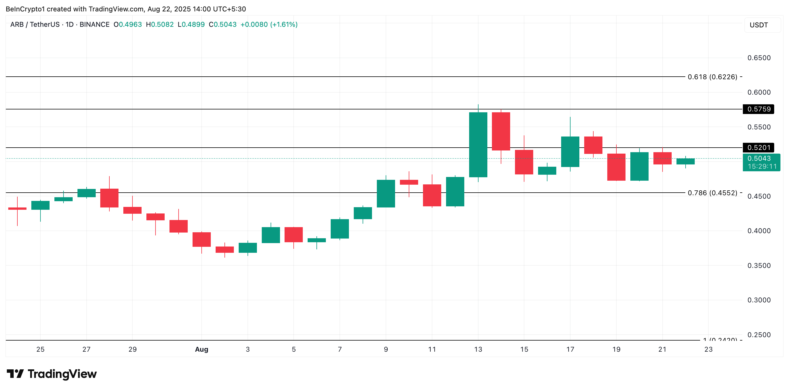 Если спрос увеличится, ARB может преодолеть сопротивление на уровне $0,52 и двинуться к $0,57.