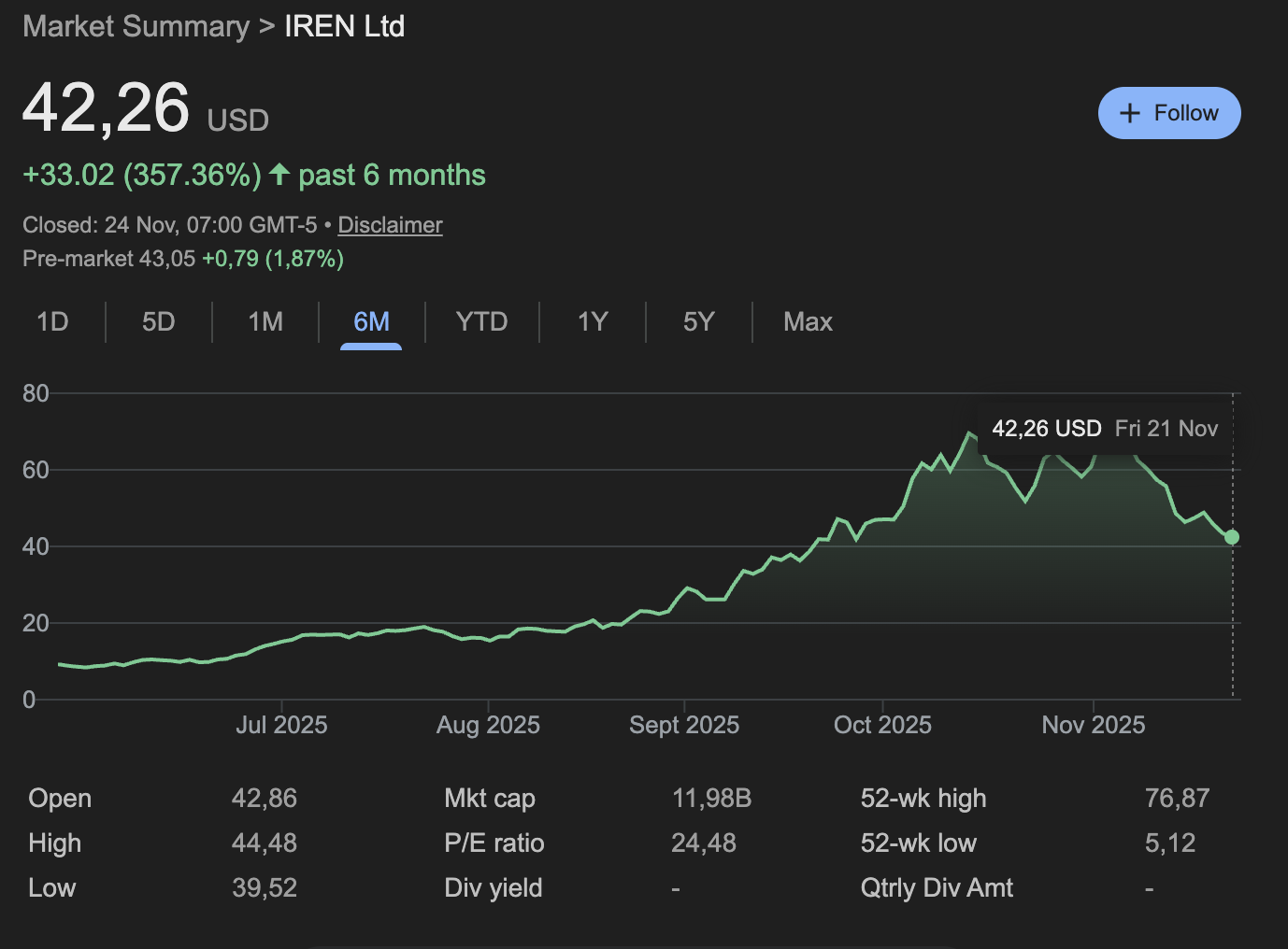 Однако стоит отметить, что на фоне коррекции крипторынка котировки акций крупных майнеров вроде IREN и MARA демонстрируют заметное снижение в последние недели.