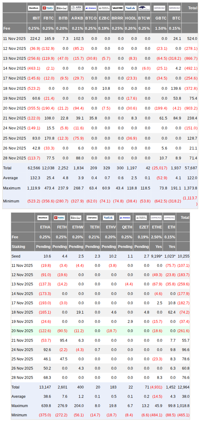 Последние данные по американским спотовым биткоин- и Ethereum-ETF намекают, что худшая часть распродажи может быть уже позади. Фонды на базе первой криптовалюты завершили «неделю Благодарения» с притоком в $220 млн, а продукты на базе альткоина привлекли $312 млн.