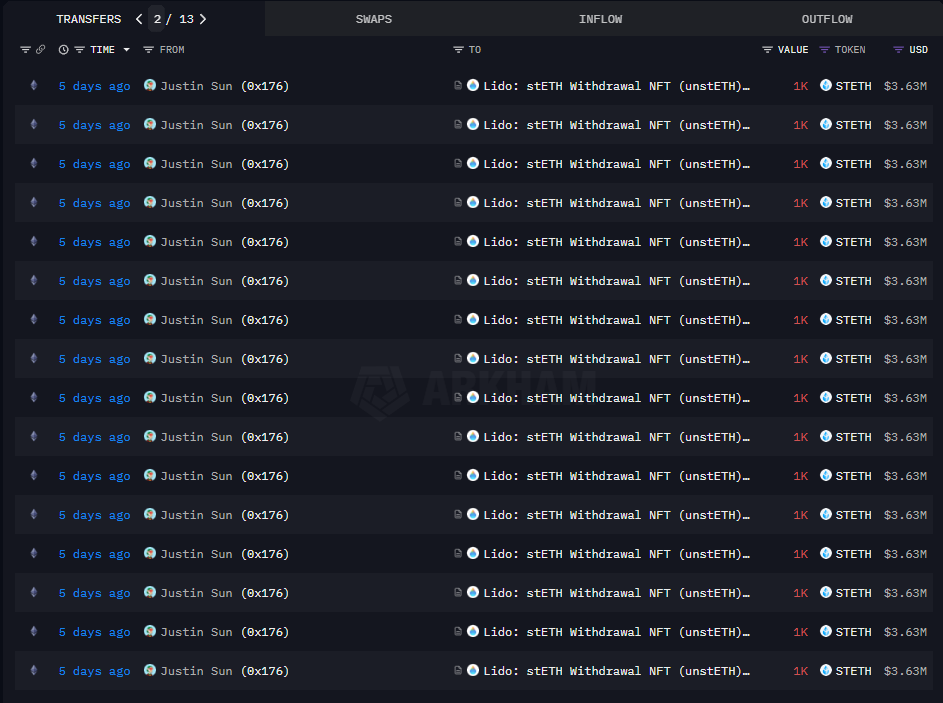 Согласно дашборду Arkham, за последние дни помеченные как принадлежащие Сану кошельки вывели из Aave около $650 млн в Ethereum. На его адресах по-прежнему хранится stETH стоимостью $390 млн.