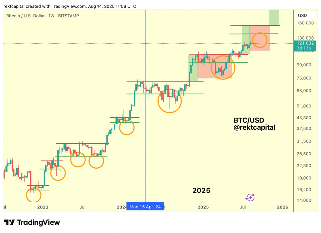 1-недельный график BTC/USDT. Аналитика: Rekt Capital