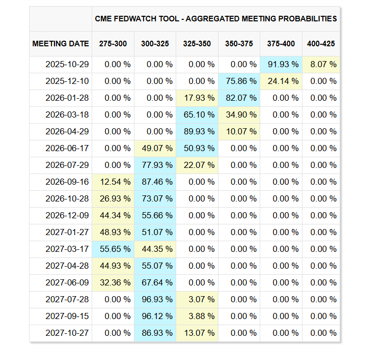 На прошлой неделе Федеральный комитет по операциям на открытом рынке (FOMC) проголосовал за снижение процентных ставок на 25 базисных пунктов — первое снижение за девять месяцев, и этот шаг был широко ожидаем рынками. Хотя Пауэлл отказался комментировать вероятность дальнейшего снижения в октябре, высоки ожидания, что ФРС еще снизит ставку на своих последних двух заседаниях в 2025 году.