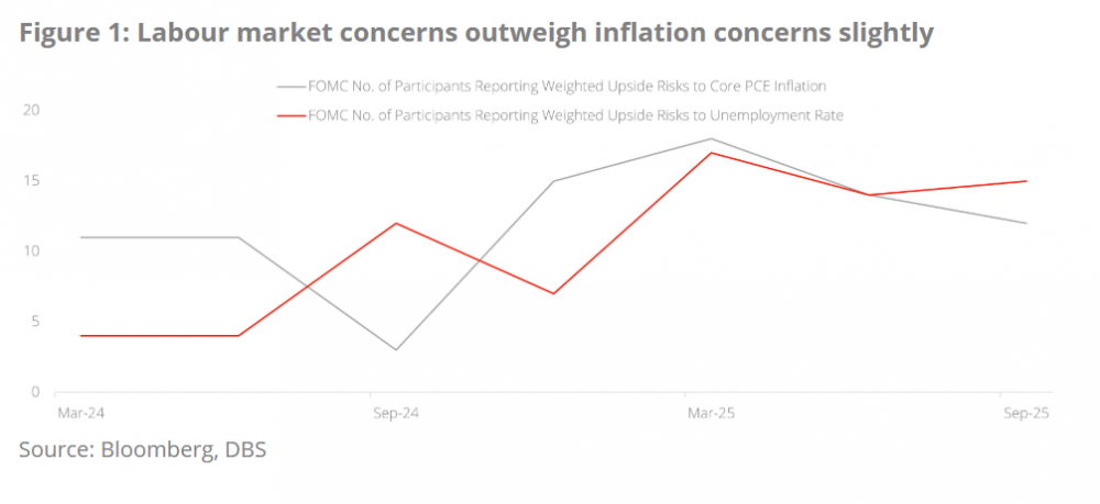 Опасения ФРС по поводу инфляции отошли на второй план по сравнению с растущими рисками на рынке труда. Источник: DBS.
