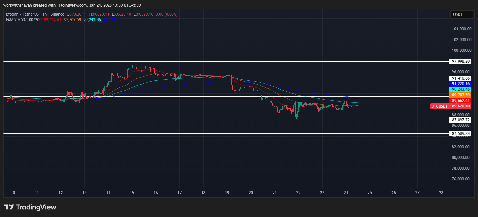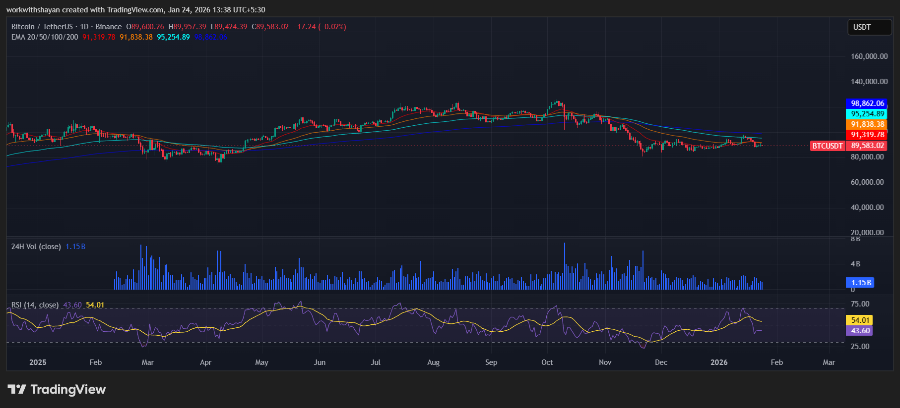 Тренд остаётся медвежьим, в то время как цена торгуется ниже кластера EMA, а спрос на ETF остаётся отсутствующим.