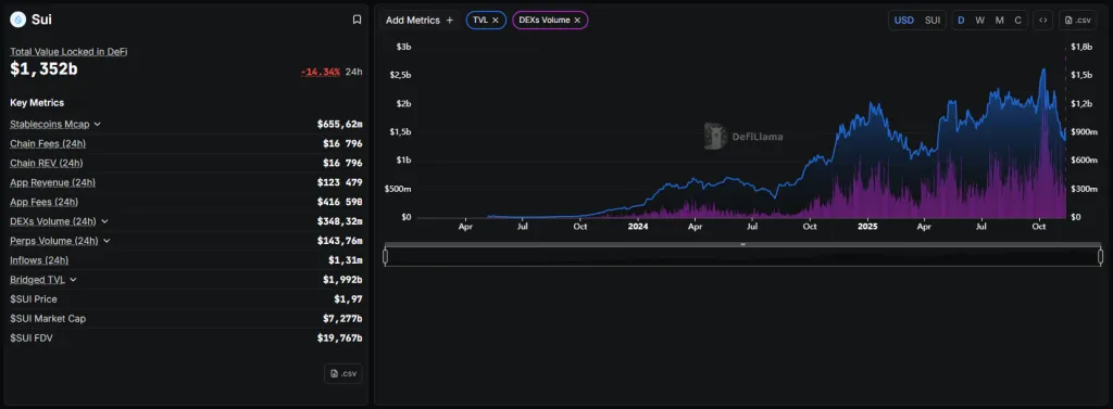 Объем заблокированных средств в L1-сети на момент написания составляет $1,35 млрд, а оборот DEX превышает $340 млн.