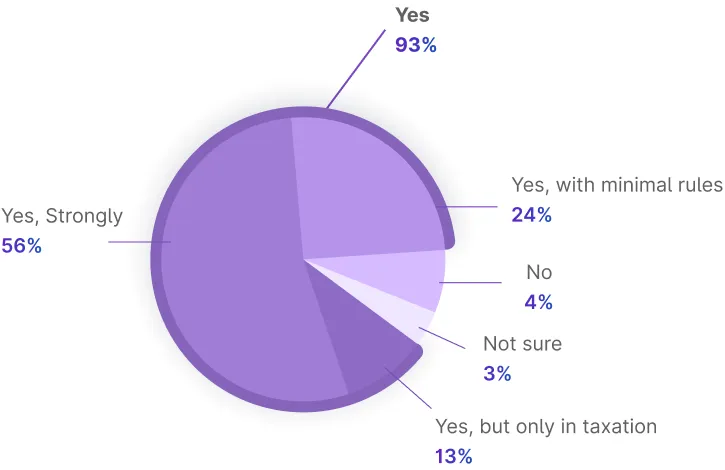 Согласно опросу индийской биржи Mudrex среди более чем 9000 человек, 93% респондентов поддерживают регулирование криптовалют в стране.