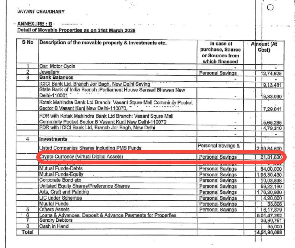 Несмотря на отсутствие полноценного регулирования, министр по делам развития квалификаций и предпринимательства Джайант Чаудхари второй год подряд отчитывается о наличии криптоактивов в портфеле.